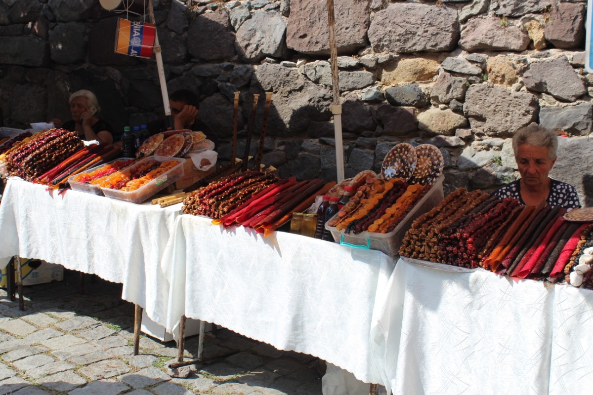 Die strengen Bedingungen des kontinental trockenen Klimas (heisse Sommer mit mehr als 40 Grad Celsius, kalte Winter mit Temperaturen tief unter null) lassen nur etwa einen Fünftel des Landes als Ackerland dienen und etwa einen Viertel als Weideland. Dennoch wachsen schon seit Jahrhunderten Obstsorten wie Granatäpfel, Aprikosen, Pfirsiche, Weintrauben und Feigen. Die Früchte sind dank der Sonne gross und süss, besonders die orangefarbenen, faustgrossen und honigsüssen Aprikosen. Über mehrere Jahre hinweg hat die Frucht den Platz als Symbol Armeniens eingenommen. Angesogen mit den hellen Sonnenstrahlen erfreuen sich nicht nur Armenier, sondern auch Gäste jedes Jahr aufs Neue an ihrem Geschmack und Aroma. Während der Aprikosen-Saison von Juni bis August ist ein gedeckter Tisch ohne Aprikosen nicht vorstellbar. Die Aprikose wird auch als Kultursymbol angesehen. Auch der Granatapfel zählt als armenisches Symbol und ist überall zu finden: am Markt, im Shop, als Souvenir oder als Element von Inneneinrichtung oder Architektur. Ethnographen belegen, dass die Frucht seit der Antike als Symbol der Fruchtbarkeit und Wohlstand angesehen wird. Granatäpfel werden im Herbst reif und halten bis Neujahr. Die Körner werden zu unterschiedlichen nationalen Speisen gemischt, besonders in Kuchen und zu Fleischgerichten. Außerdem wird aus der Frucht köstlicher Saft gewonnen.
