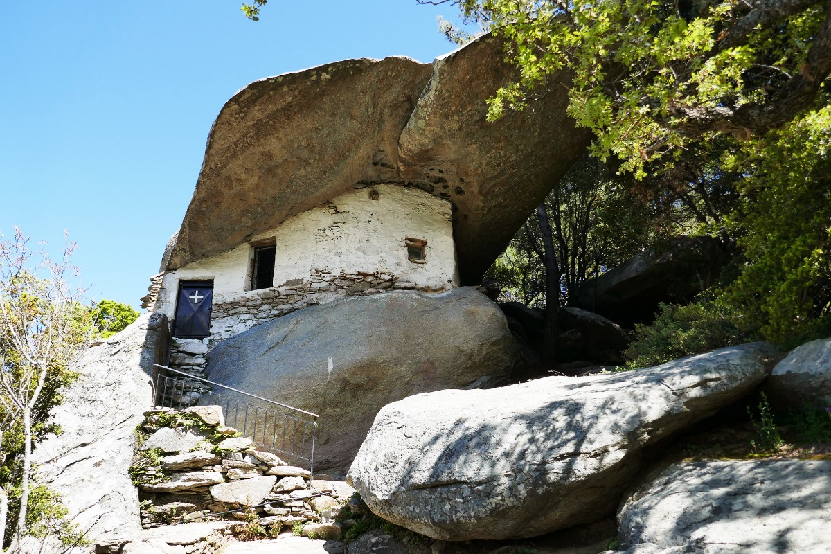 In prähistorischer Zeit habe es hier oben grosse Eichenwälder gegeben, weiss Angelos. Erosion und die grossen Temperaturschwankungen hätten später die kahlen Felsen gesprengt, abgeschliffen und so die bizarren Felsformationen geschaffen, die wie Statuen auf der Hochebene stehen. Bäume gab es bis Mitte des 20. Jahrhunderts, doch die 35'000 Ziegen auf Ikaria machten diesem Wald den Garaus. Im Winter könne es hier oben Frost und Schnee geben. Häufig hüllt dicker Nebel das Gebiet ein. Um dann den Weg für die Hebamme oder andere Reisende zu markieren, stellten die Ikarioten Steine auf, die über die für die Orientierung schwierige Wegstrecke halfen. Wenn Not war, konnte die Hebamme in einem Steinhäuschen übernachten, was bis in die 60er Jahre vorkam.