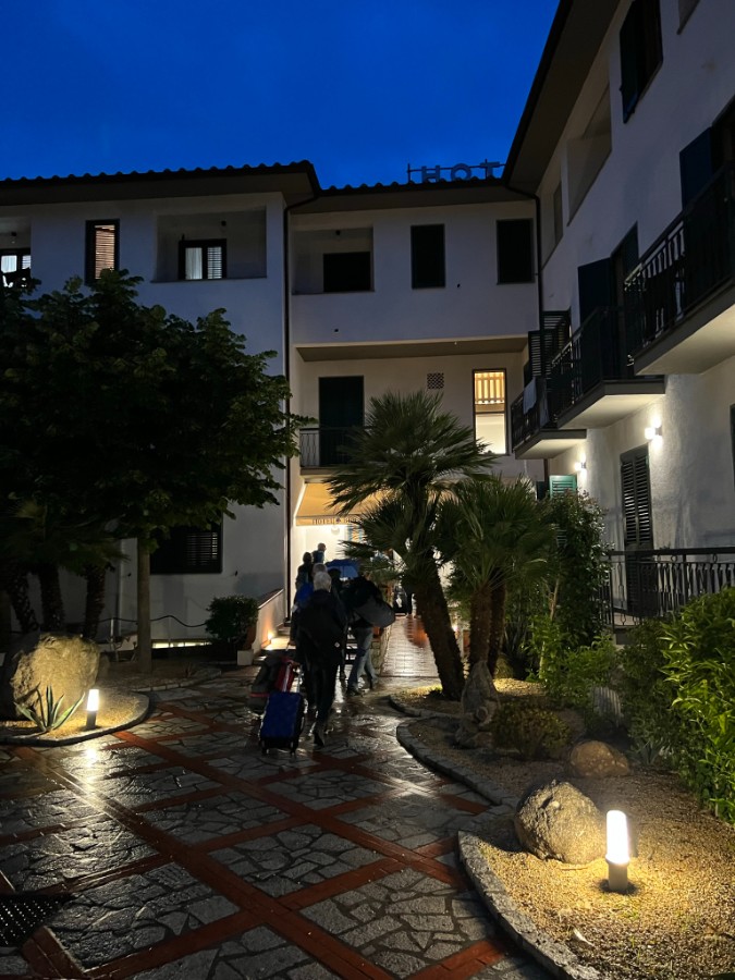 Als Fusspassagiere verliessen wir gemeinsam mit den Autos die Fähre in Portoferraio. Die Rollkoffer hatten sich während der Zugfahrt schon als äusserst praktisch erwiesen und ebenso wieder beim Ausstieg von der Fähre. Am Hafen wurden wir bereits von Taxis erwartet, da zu dieser späten Stunde keine öffentlichen Busse mehr fuhren. Das Gepäck wurde schnell verladen und nur 20 Minuten später erreichten wir unser Hotel in Procchio.