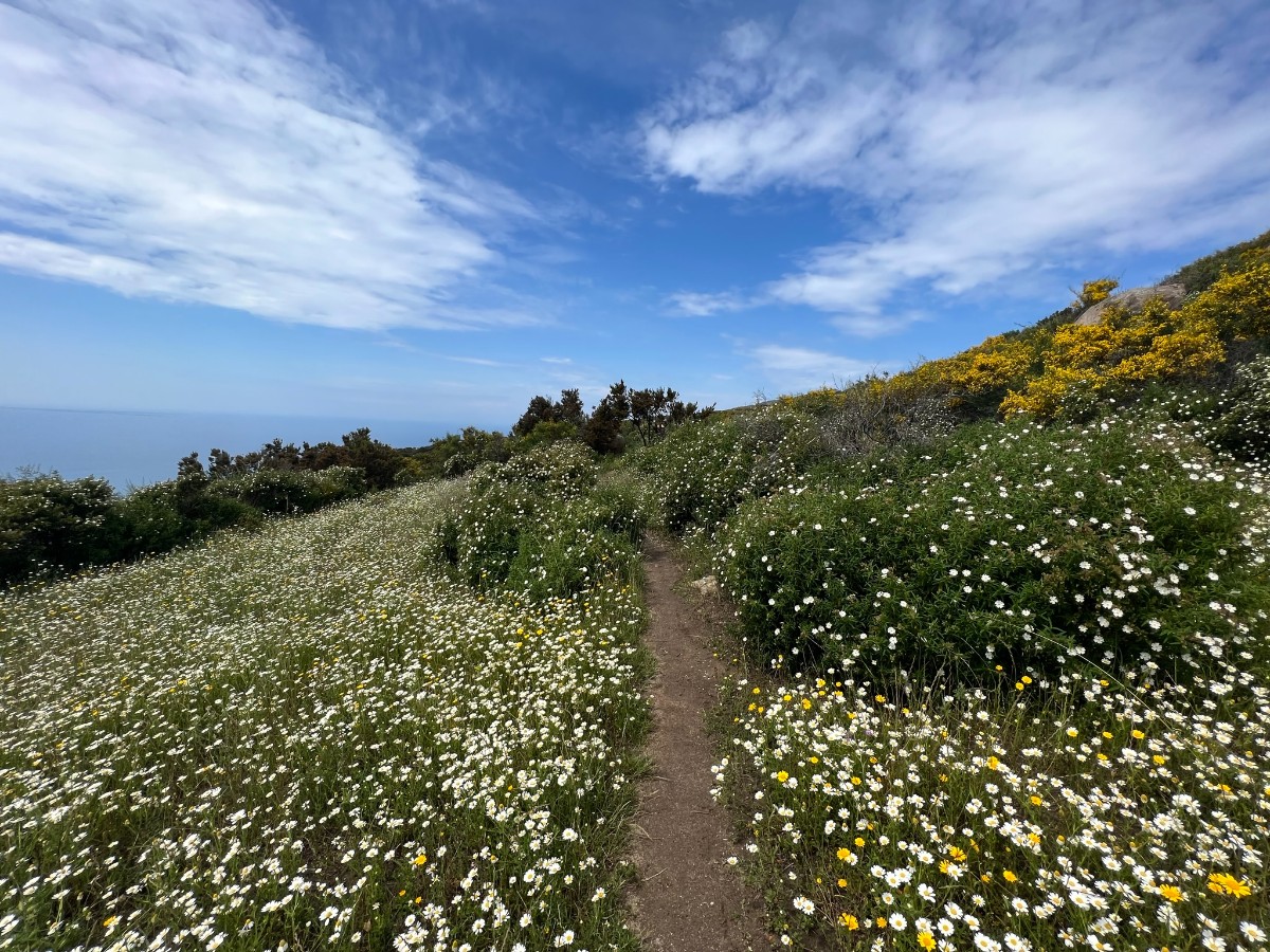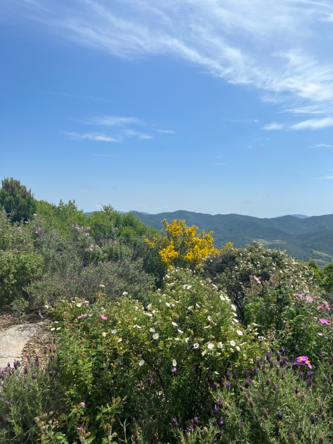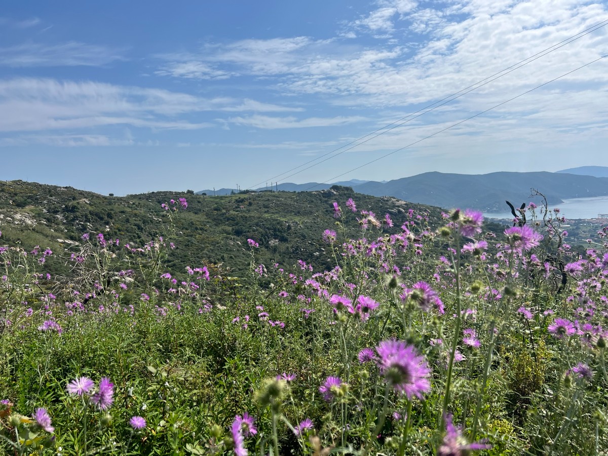Die blühende Natur, die uns hier erwartete, war einfach herrlich. In allen erdenklichen Farben und betörenden Düften strahlten uns die Blumen entgegen und lockten zahlreiche Handykameras hervor, um sie festzuhalten. Unsere Reiseleitung führte uns geschickt über Stock und Stein und hatte immer wieder interessante Geschichten über das Land und seine Gegebenheiten zu erzählen. Elba erwies sich als überraschend hügelig. Und obwohl die Insel nicht allzu gross ist, fiel mir der Orientierung anfangs gar nicht so leicht. Bewunderte ich zu Beginn der Wanderung eine Bucht in die eine Richtung, konnte ich eine Wanderstunde später bereits eine andere Bucht in eine andere Himmelsrichtung bestaunen.