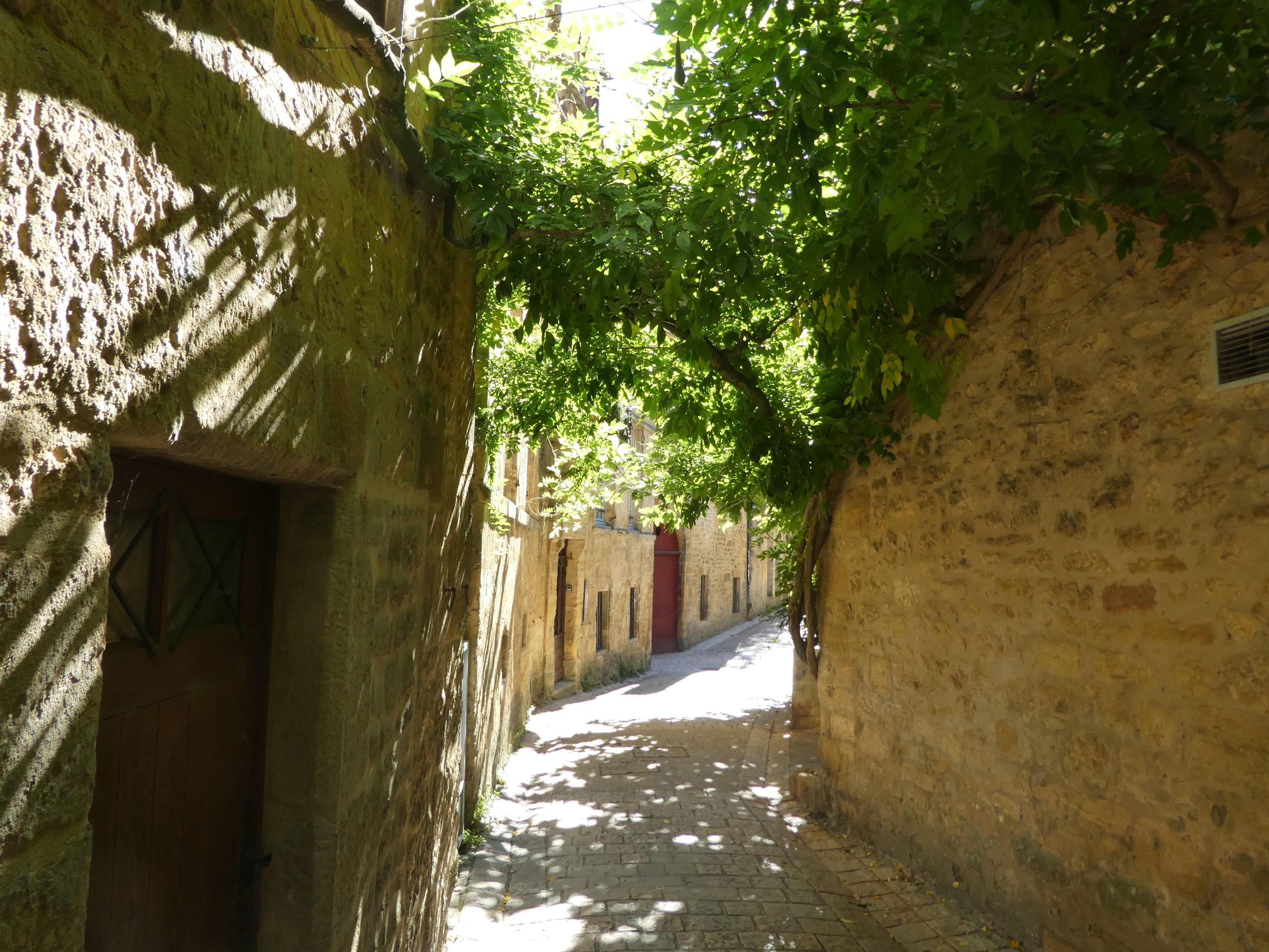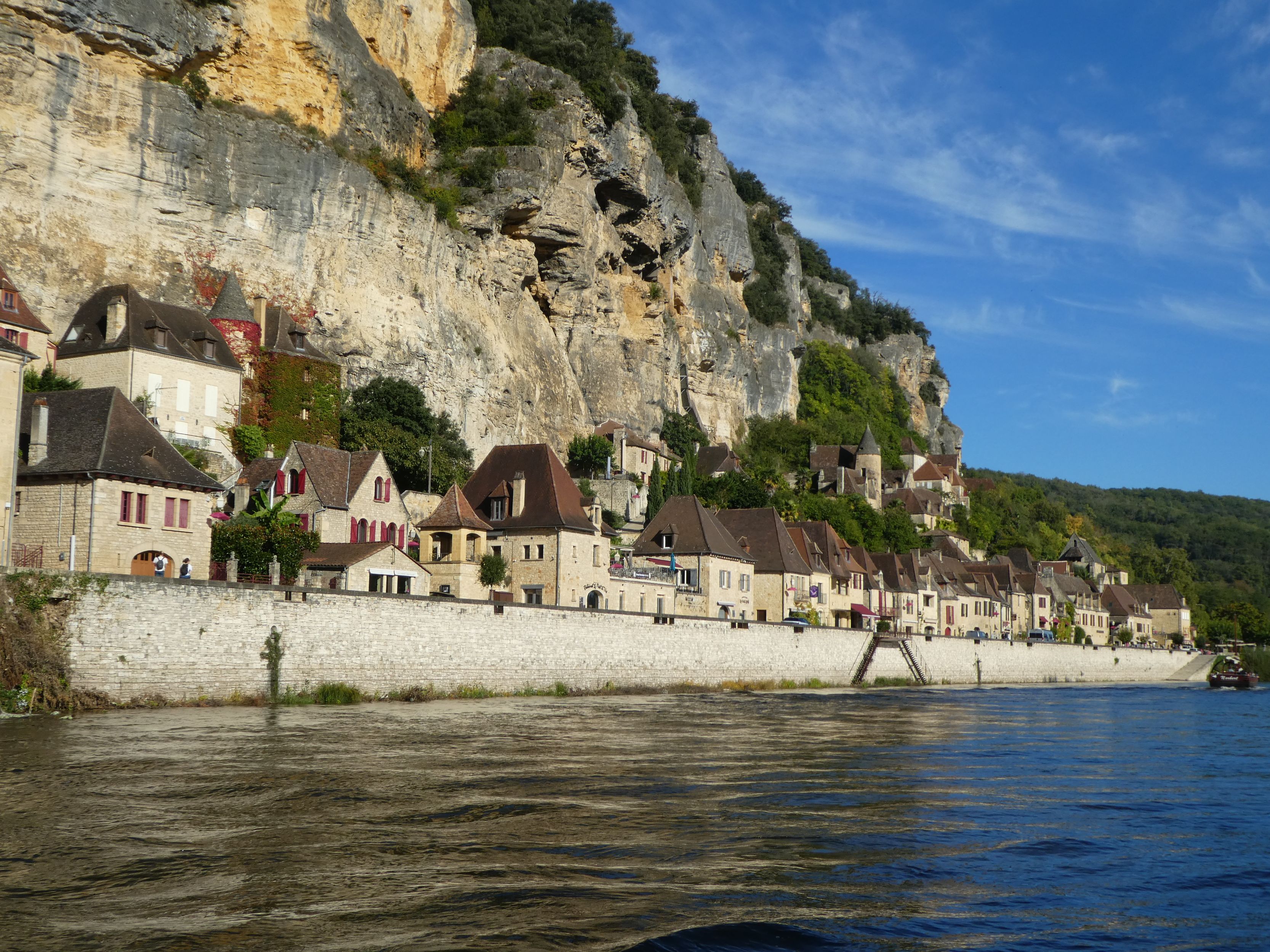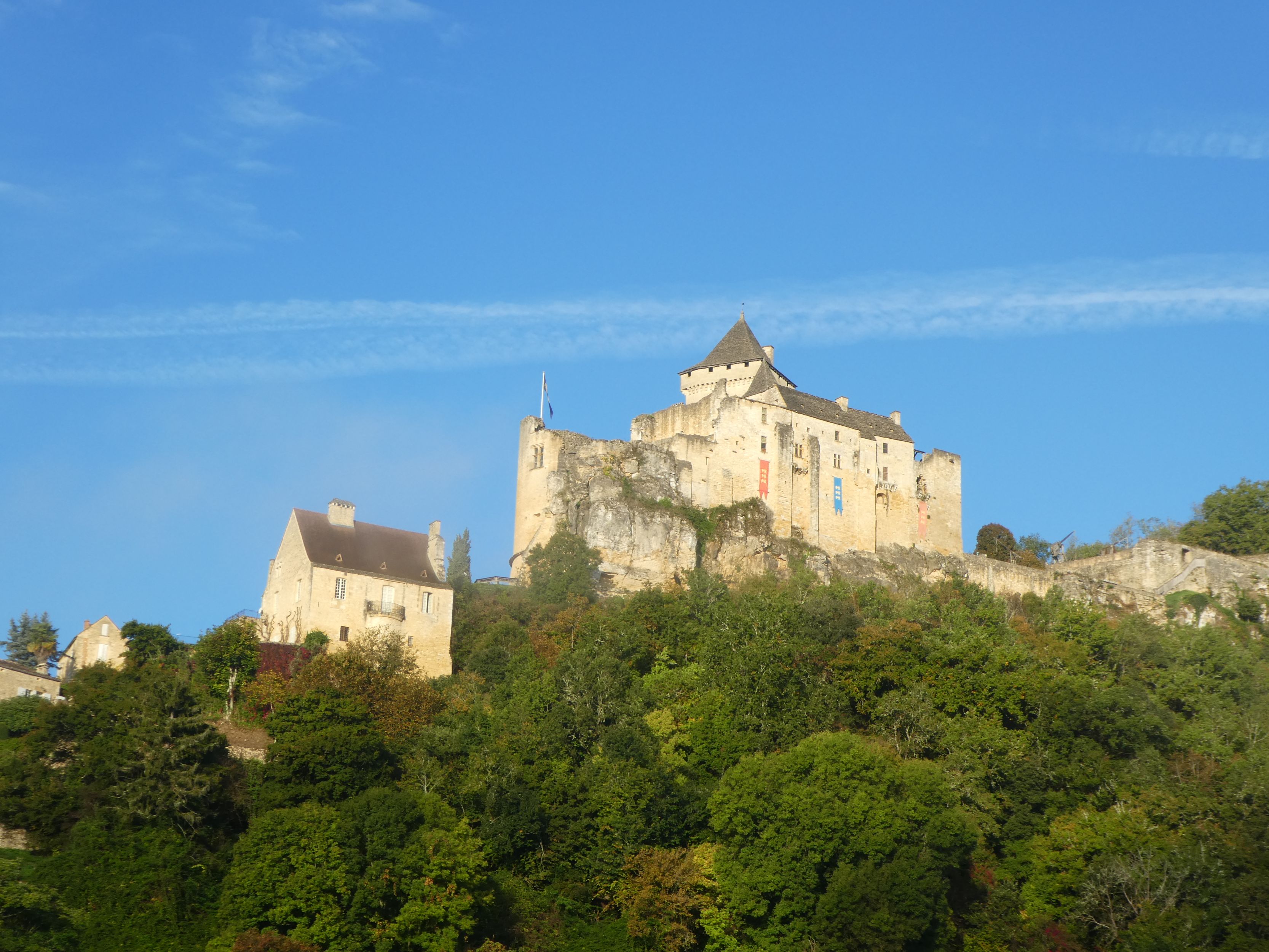 Die Sonne hat ein paar Wolken organisiert, um ihren Aufgang besser zu inszenieren. Koch und Hotelier Mickaël muss noch schnell unsere Sandwiches «filmen», übersetzt «in Folie einpacken», dann fahren wir los. Im Morgennebel wandern wir der Dordogne entlang durch Eschen-Ahorn Bäume, Bambuswälder und taufeuchte Felder mit wahren Kunstwerken von Spinnweben. In Beynac gelangen wir über steile Kopfsteinpflaster hinauf zur imposanten Burg mit der nicht weniger imposanten Aussicht. Nach dem Picknick geht’s weiter nach La Roque-Gageac, dort fahren wir mit einer Gabarre, einem ehemaligen Warentransport-Boot mit wenig Tiefgang die Dordogne rauf und runter, wieder mit einem aufgestellten, jungen Guide, aber natürlich einmal mehr nicht vergleichbar, Sie wissen schon…