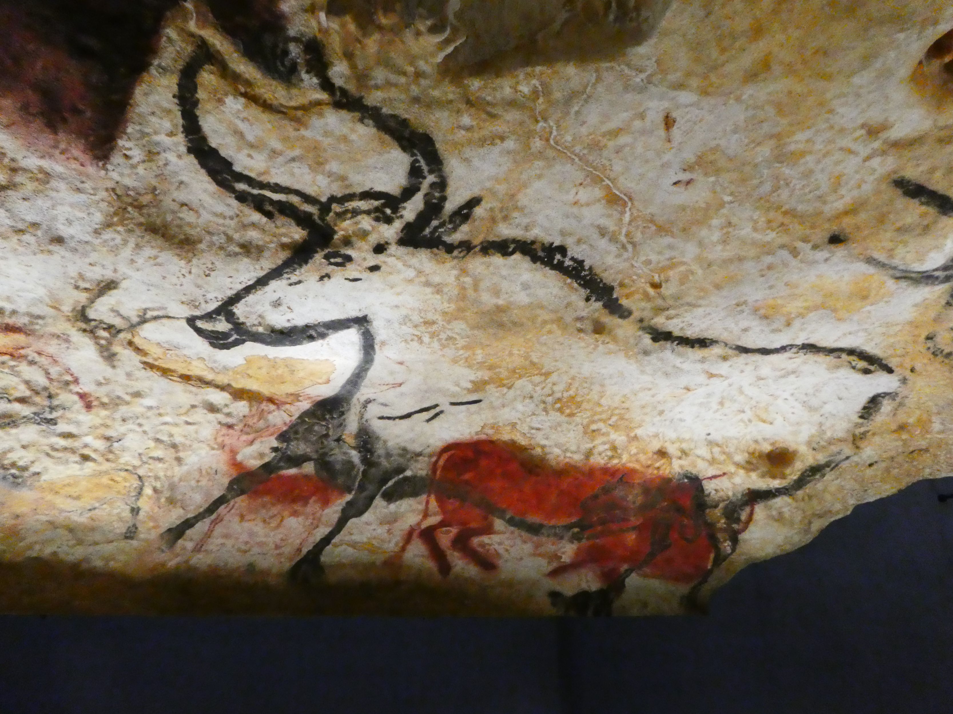 Wir verlassen Vichy, fahren Richtung Süden und treffen in Montignac auf Wanderleiterin Karin, die seit 8 Jahren im Périgord wohnt. Der Dorfrundgang verläuft schon beinahe chaotisch, die Fotografen sind kaum zu halten, man läuft sich gegenseitig vor die Linse, schiebt sich beiseite, aber diese Gassen, die Kalkstein-Häuser mit ihrem warmen Gelb, die hellblauen Fensterläden, die Glyzinien! In der «Aux berges de la Vézère» – ein raffiniertes Wortspiel - mit Blick auf die Vézère essen wir zum ersten und wie sich im Laufe der Woche zeigt nicht zum letzten Mal Ente und lernen uns langsam gegenseitig kennen. Danach geht’s nach Lascaux IV, wo sich die exakte Nachbildung der berühmten Lascaux Höhle mit den prähistorischen Felsmalereien und -gravuren befindet. Ein sehr sympathischer junger Mann mit einem sehr sympathischen Akzent – «Sie müssen die Örer über beide Öhren ziehen» – führt uns mit viel Enthusiasmus durch die exakt nachgestellte Höhle. «Kommen Sie mit mir» sagt er immer wieder in einem fast verschwörerischen Unterton. Wäre ich etwas jünger, ziemlich viel jünger, ich würde ihm überall hin folgen!