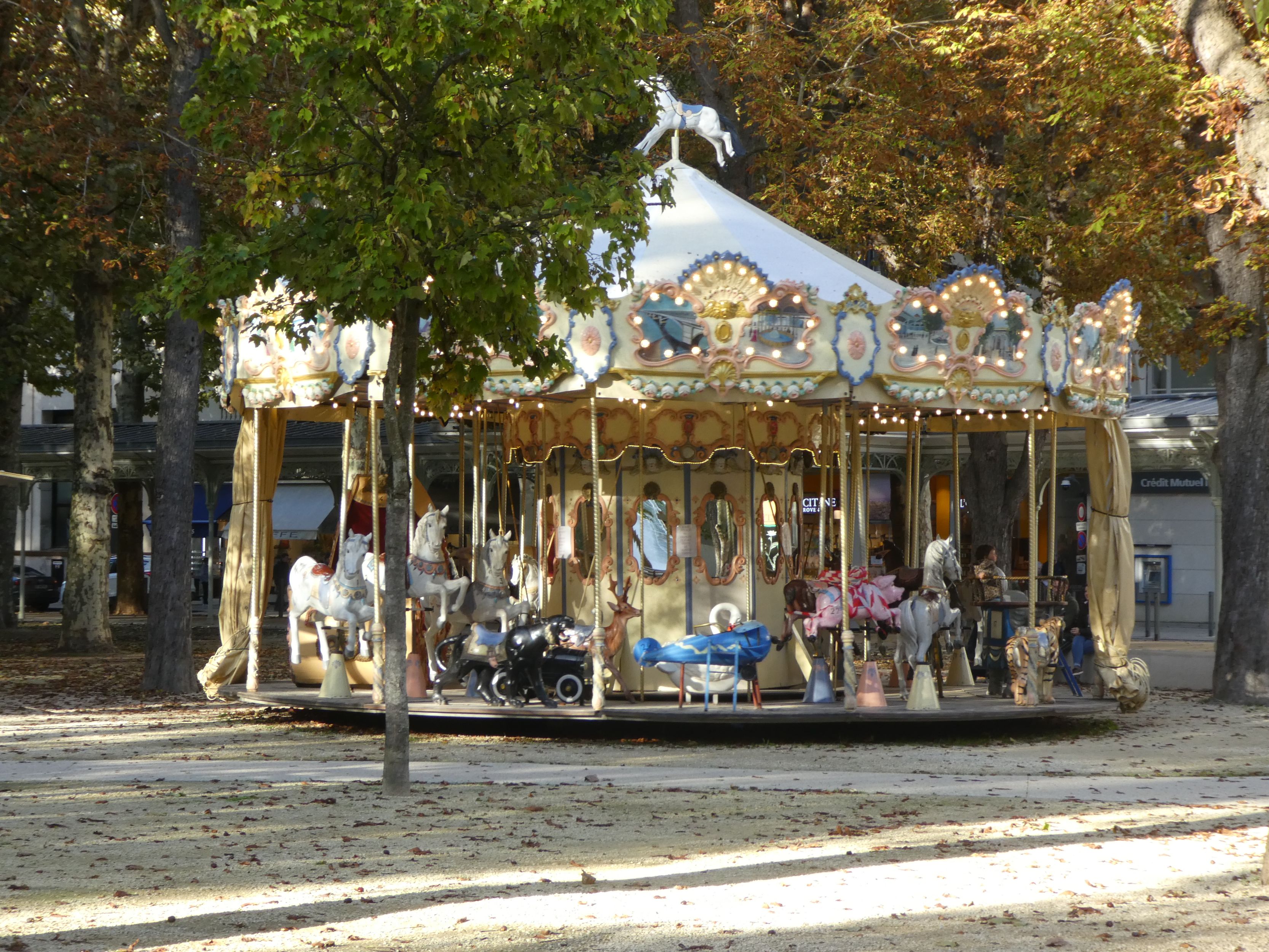 Das Hotel in Vichy, unserem Zwischenhalt auf der Reise ins Périgord, liegt sehr zentral, in ein paar Schritten ist man an der herrlichen Promenade entlang des Bassins de l’Allier und im Quartier der früheren Bäder. Unglaublich, was diese Stadt zu bieten hat an wunderschönen Gebäuden und Plätzen; die Quellenhalle, das Thermalbad, die hufeisenförmige Passage beim Musikkiosk, wo man einfach unbedingt ein erstes Apéro nehmen muss, die Wasserspiele beim Palais des Congrès, das alte Karussell. Einige der Gebäude werden zwar teilweise gerade renoviert, oder bedürften einer Renovation, aber sehenswert sind sie allemal. Der Zwischenhalt in Vichy hat sich durchaus gelohnt und es gäbe noch so einiges zu sehen dort.