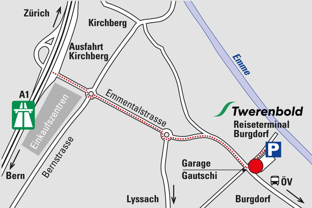 Bei der Garage Gautschi, an der Schachenstrasse 33, in Burgdorf-Lyssach befindet sich der Reiseterminal für die Region Bern, sehr gut erreichbar, in unmittelbarer Nähe der Autobahn. Der Reisterminal Burgdorf verfügt über offene Kundenparkplätze, Toiletten & eine Cafeteria/Warteraum.