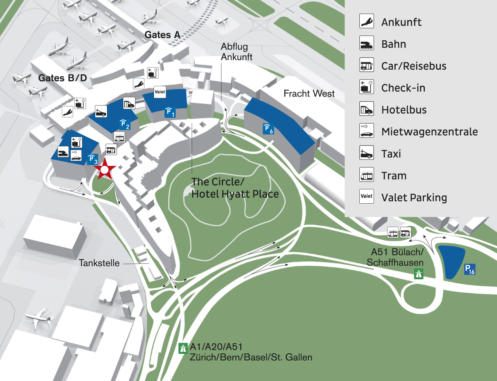 - Parking direkt am Flughafen Zürich: